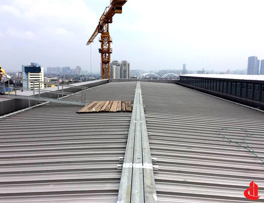 屋面面積約35000m2,屋面包含金屬屋面系統(tǒng)、天溝系統(tǒng)、抗風(fēng)揭系統(tǒng)、防墜落系統(tǒng)、內(nèi)檐口