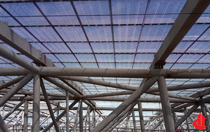 且天窗采用散射有機玻璃,避免陽光對運動地板的損害,并通過配備電動遮陽裝置調節(jié)自然光,滿足白天正式比賽時的遮光要求。