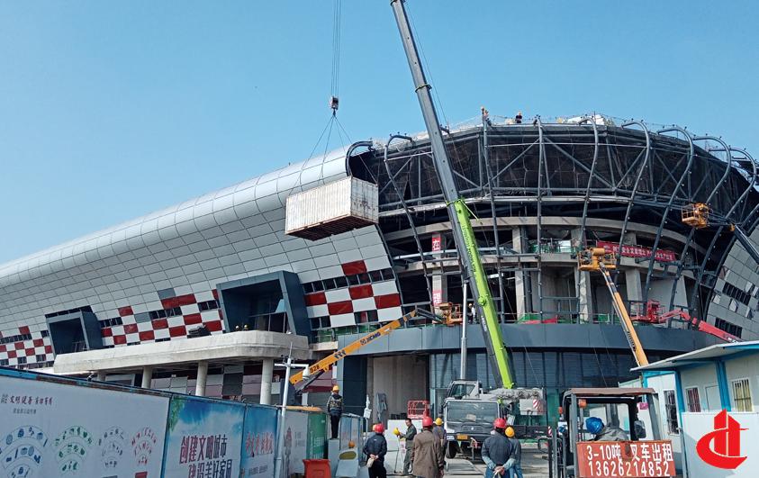 將1.8萬平方米的大型超市布置在首層,而將體育館場地層架高。比例、尺度適宜的大底盤與體景龐大的體育館相結合,