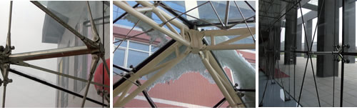 2、點(diǎn)式玻璃幕墻是一種高通透,簡(jiǎn)潔明快的幕墻形式,它將玻璃和索桿系統(tǒng)完美的結(jié)合,充分表達(dá)建筑設(shè)計(jì)師的理念。